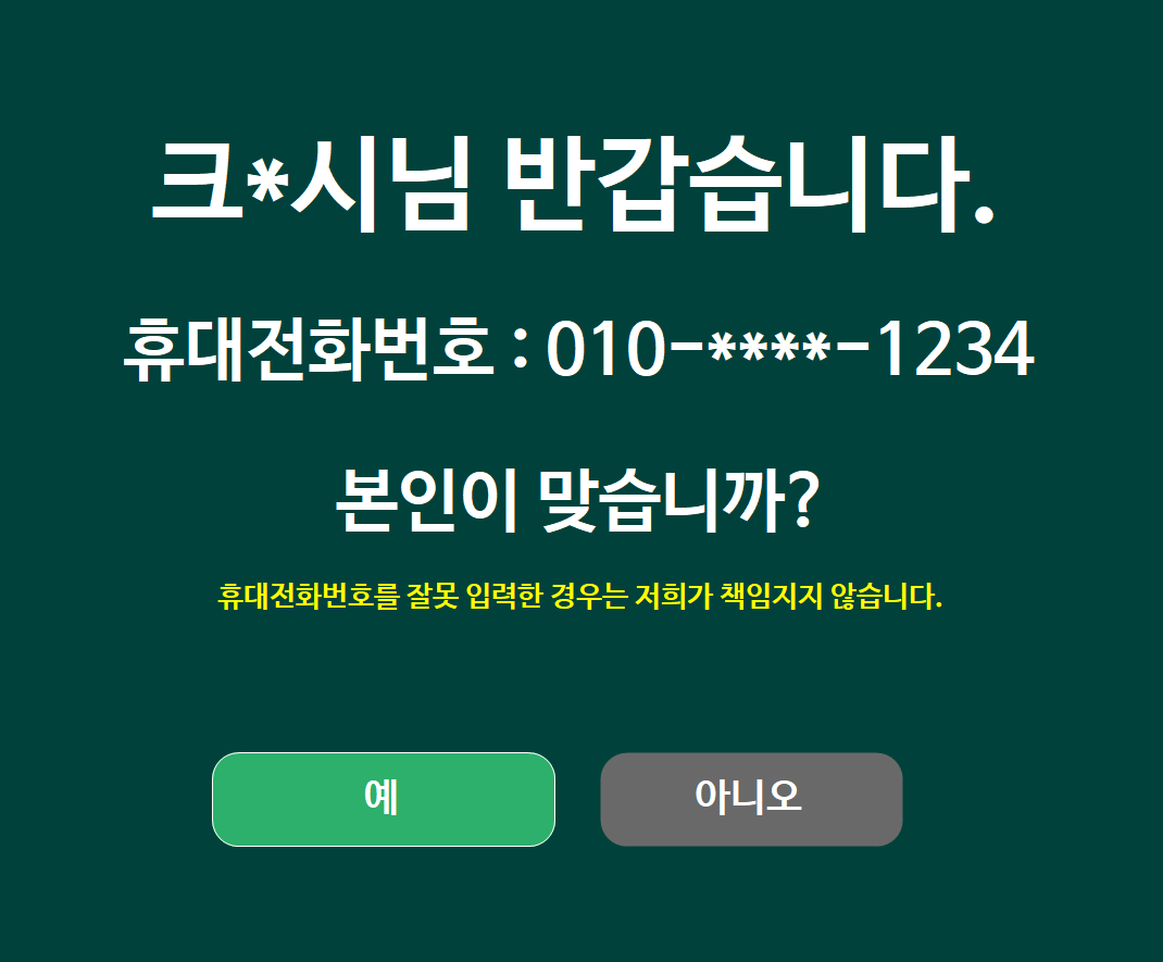 앱이나 휴대전화가 없어도 회원가입 시 등록한 휴대전화번호를 입력하면 이용 하실수 있습니다.